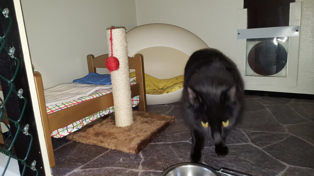 Hos oss får din katt det nesten som hjemme, katten har sin egen leilighet med direkte tilgang til sitt uteareal 24t i døgnet. Inne er det alltid belyst slik at det er lys i tunnelene fra utsiden, det er da lett å finne veien inn igjen. Det er gulvbelegg som er enkelt å gjøre rent. Veggene er isolert som en enebolig. Innegarene er tilkoblet kattenes uteareal via et tunellsystem.